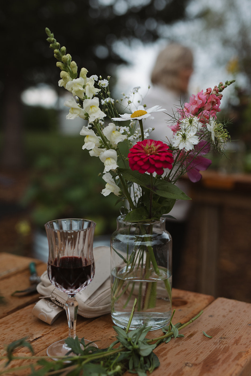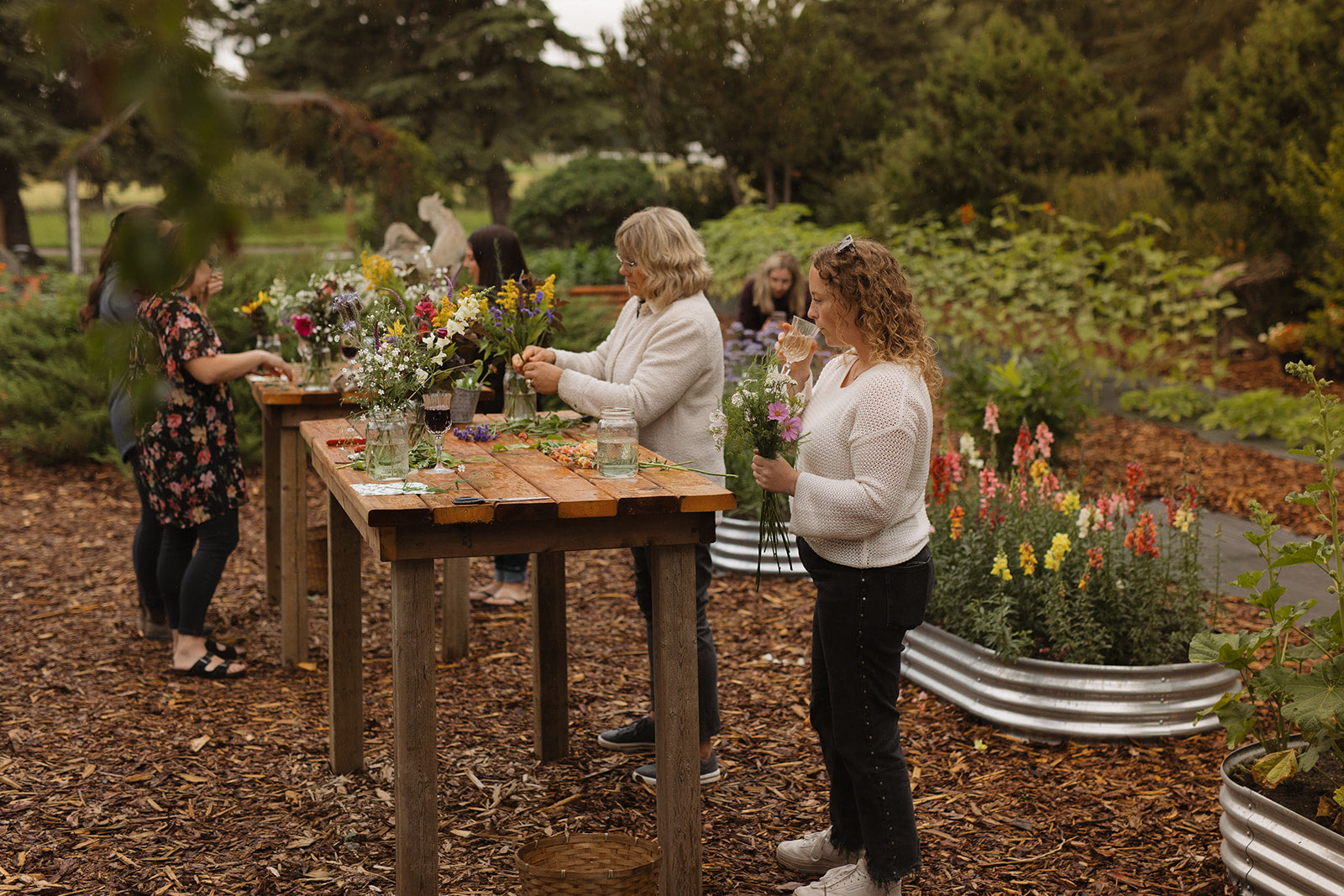 We’ll start with a mini flower tour, where we showcase the variety of flowers we grow and highlight what’s currently in bloom. After that, you’ll receive your own pair of snips and are invited to wander through the gardens, harvesting to your heart’s content. We’ll be there to guide you through the process — from selecting the perfect blooms to arranging them — while also sharing tips on how to maximize their vase life. All this happens as you savor delicious charcuterie and sip on authentic Italian wine.